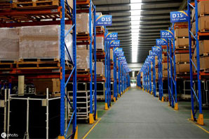 倉儲貨架面向通道進行保管。為使物品出入庫方便,容易在倉庫內移動,基本條件是將物品面向通道保管。